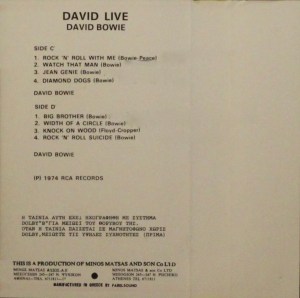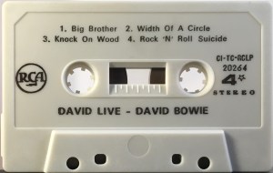 Tape 2. Side D: Big Brother; Width Of A Circle; Jean Genie; Rock ‘n’ Roll Suicide.