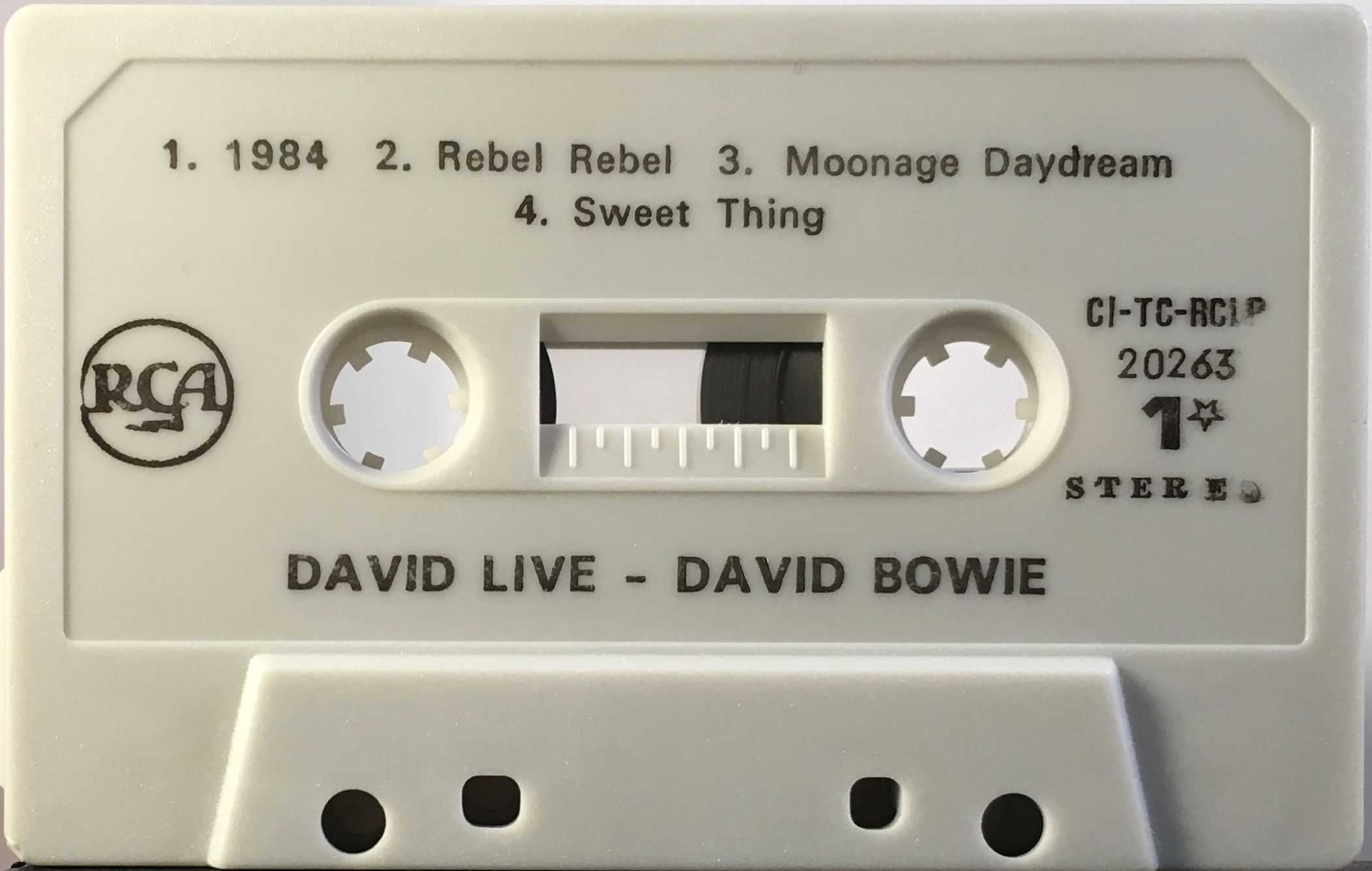 Tape 1. Side A: 1984; Rebel Rebel; Moonage Daydream; Sweet Thing.