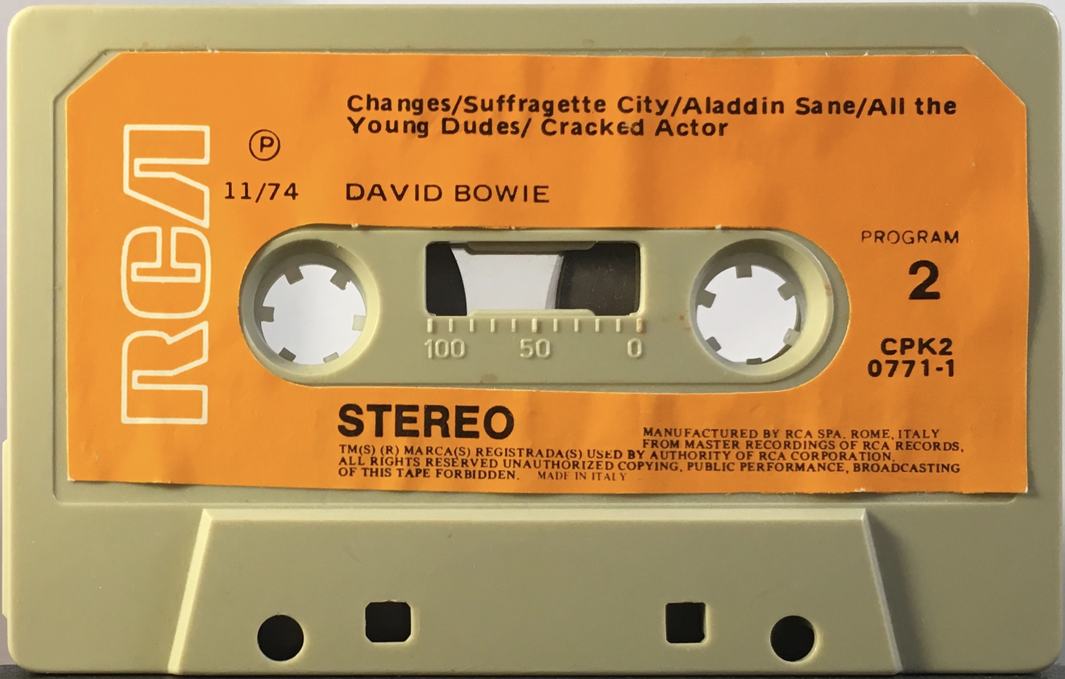 Tape 1. Side 2: Changes; Suffragette City; Aladdin Sane; All The Young Dudes; Cracked Actor.