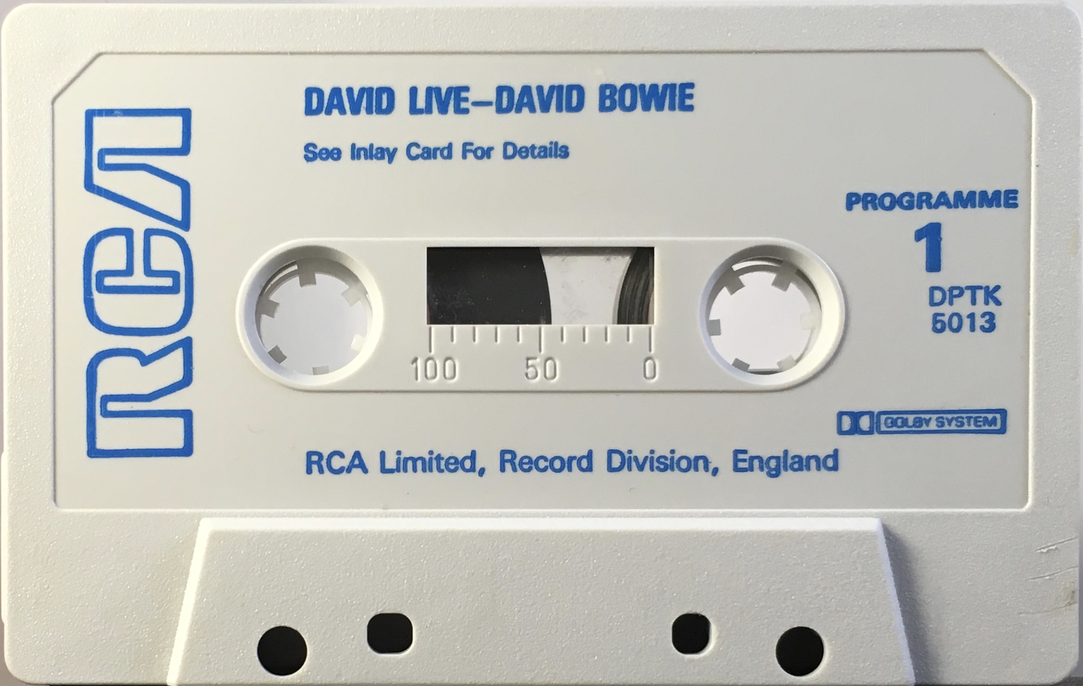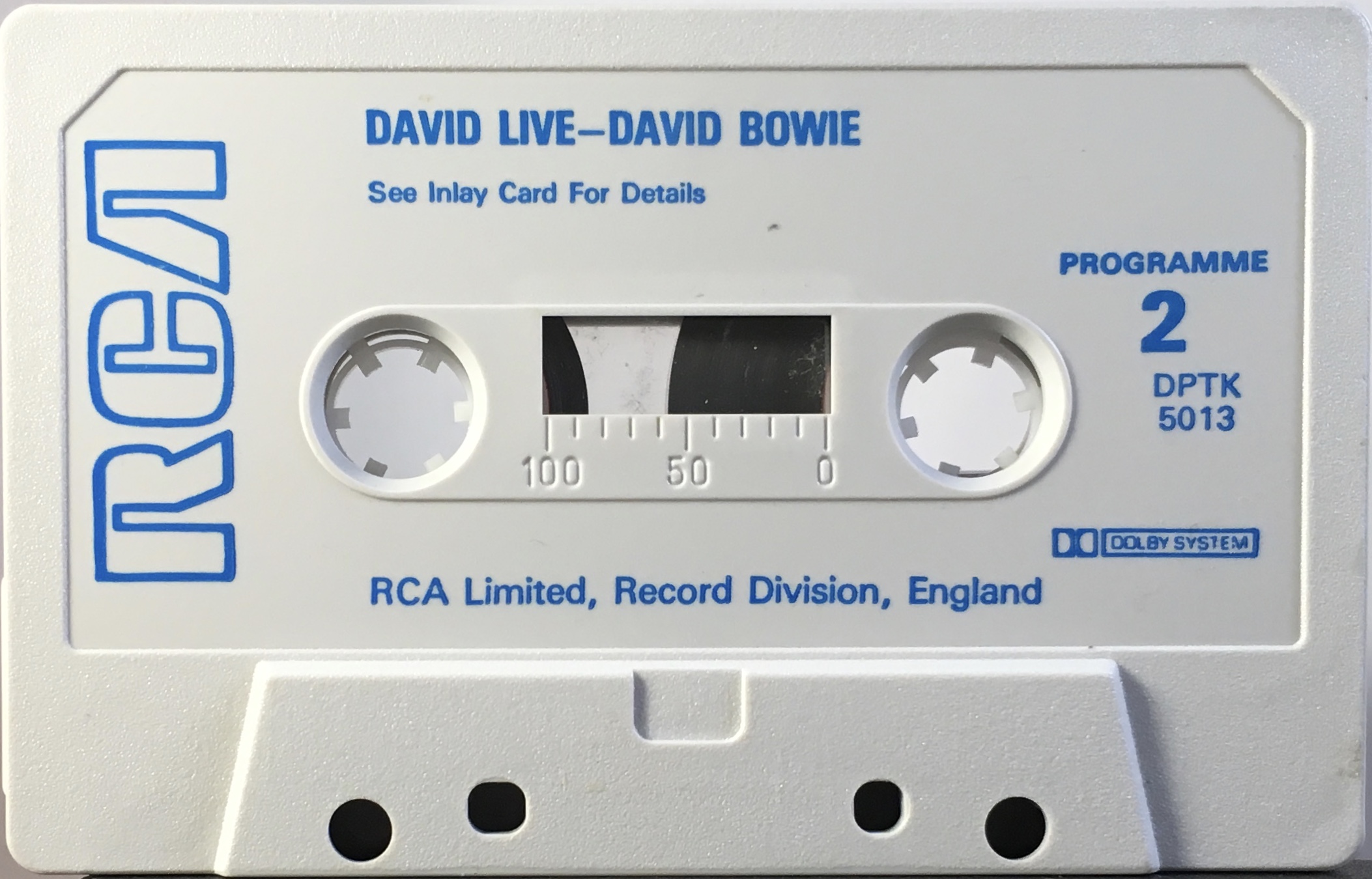 The cover is made from thick glossy, folded paper, the rear of the cover is blank and the track list is on the inside and the rear panel. The cassette is white with blue ink printed directly onto it and a hollow, blue RCA logo.