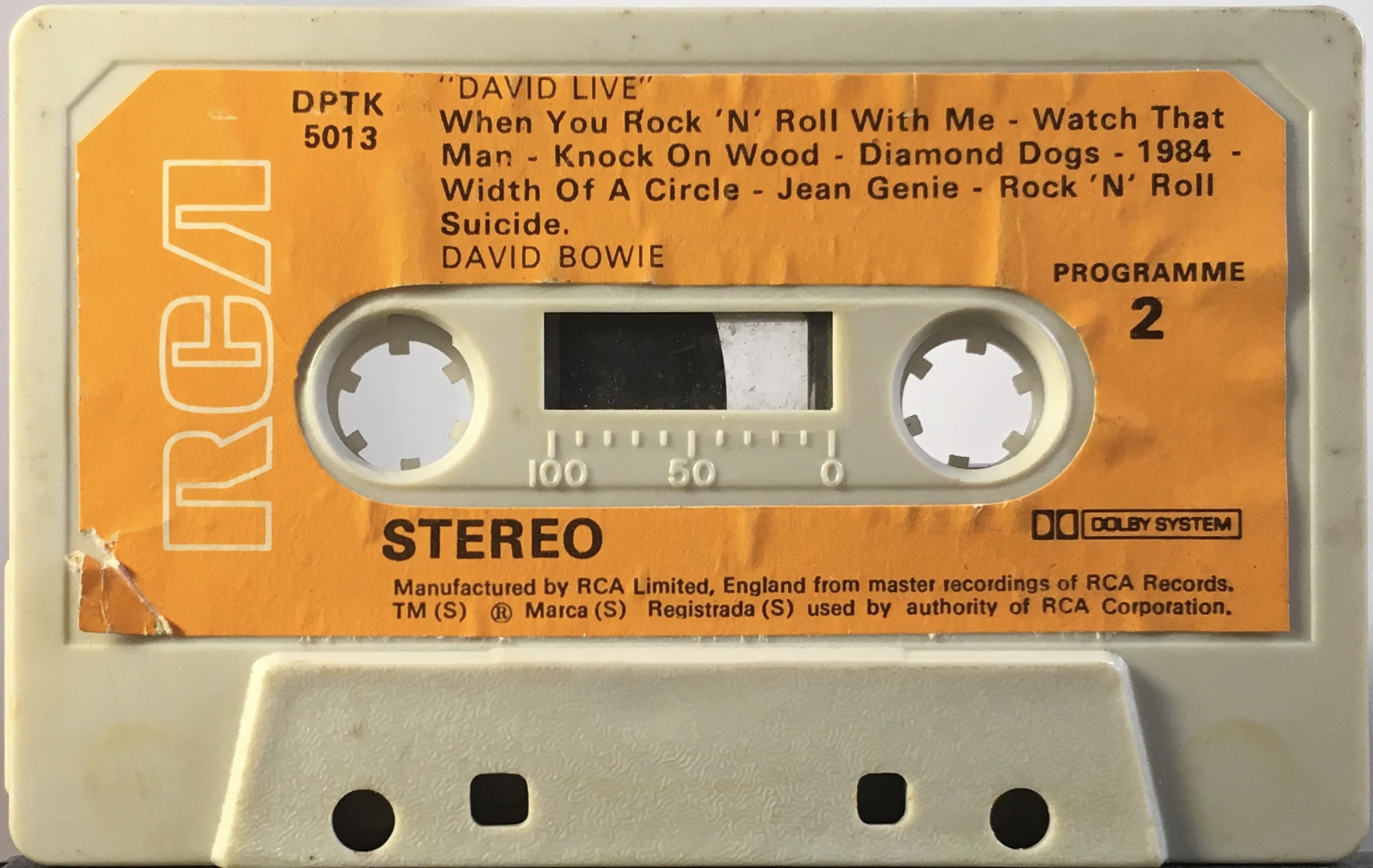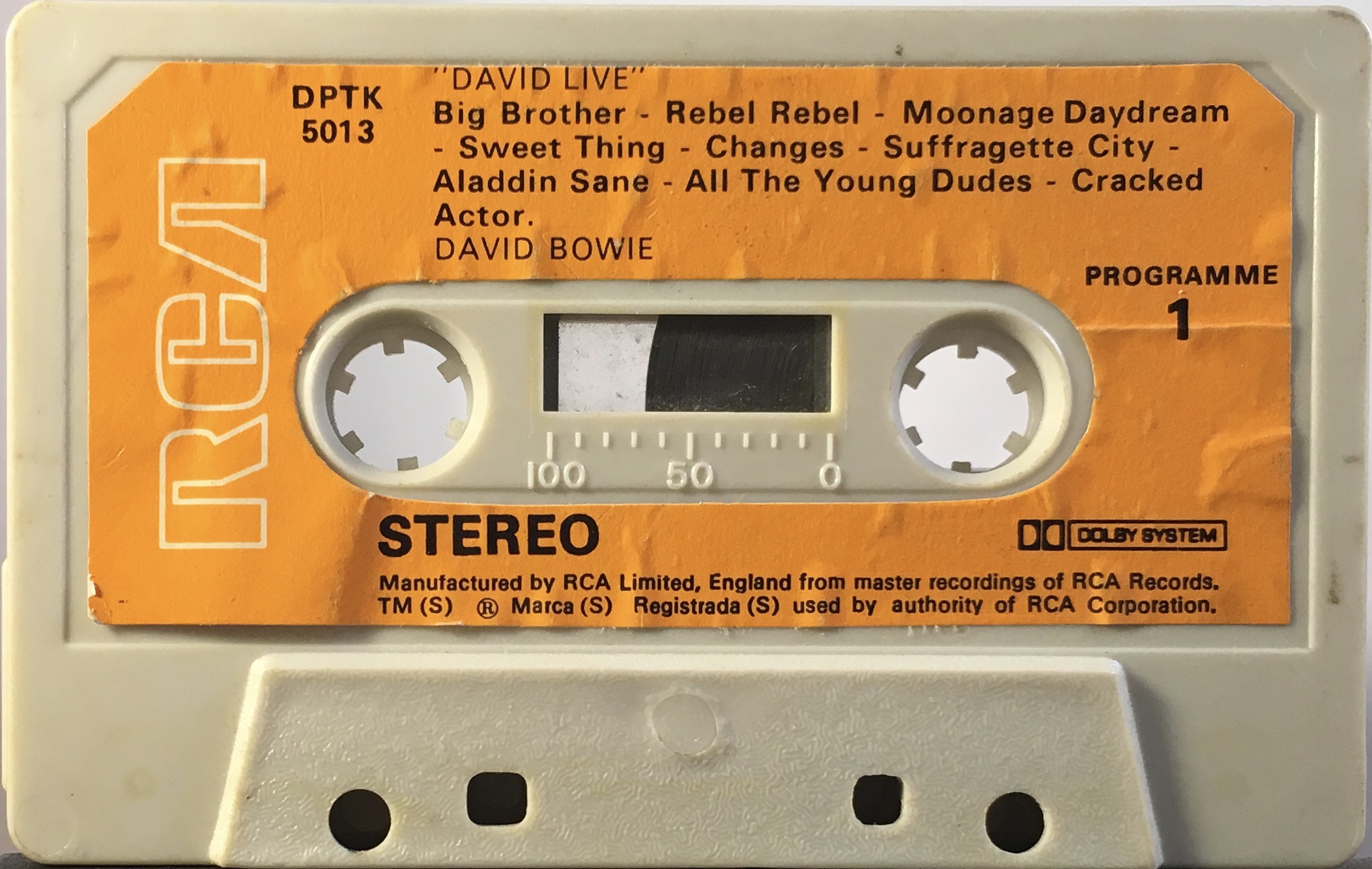The cover is made from thick glossy, folded paper, the rear of the cover is blank and the track list is on the inside and the rear panel. The cassette is grey with RCA orange labels and hollow, white RCA logo.