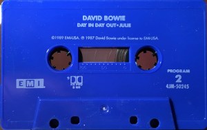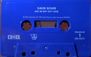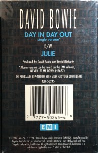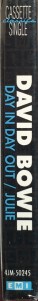 Card slip-case with picture front and black side and rear panels. Track list on front and rear panels. ‘© 1989’ and ‘℗ 1984′ on rear with ‘Manufactured by Capitol Records’. The timings for the tracks are: Day In Day Out; 3:06 and, Julie: 3:32.