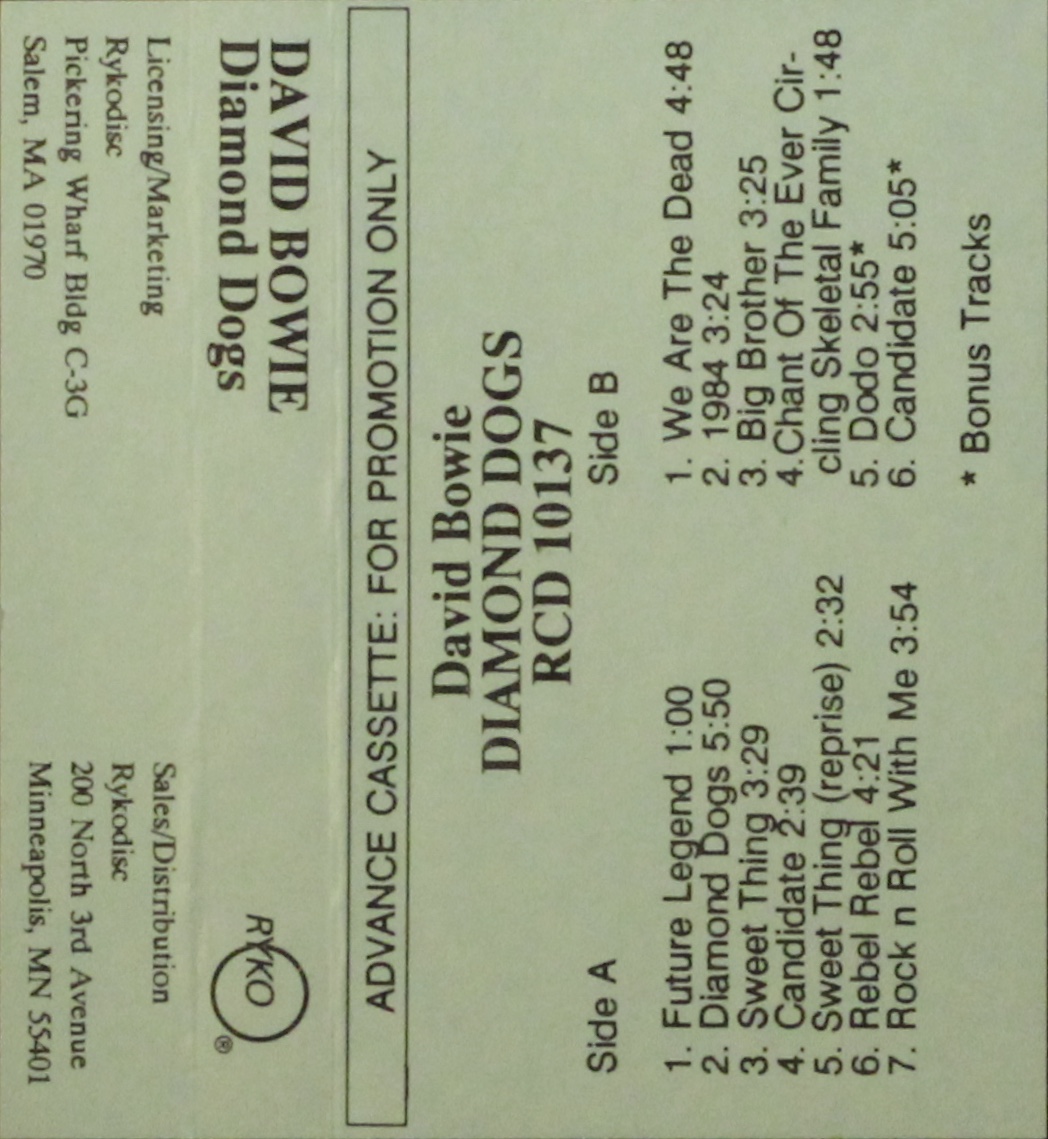 Diamond Dogs: USA; RYKO; RACS 0137; 1990.