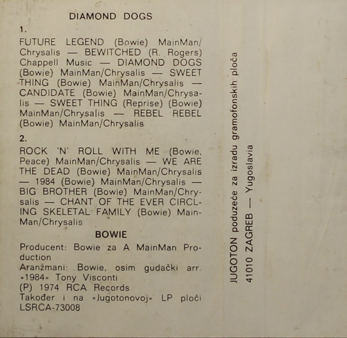 Diamond Dogs; Yugoslavia; RCA/ Jugoton; CARCA-265; 1974.
