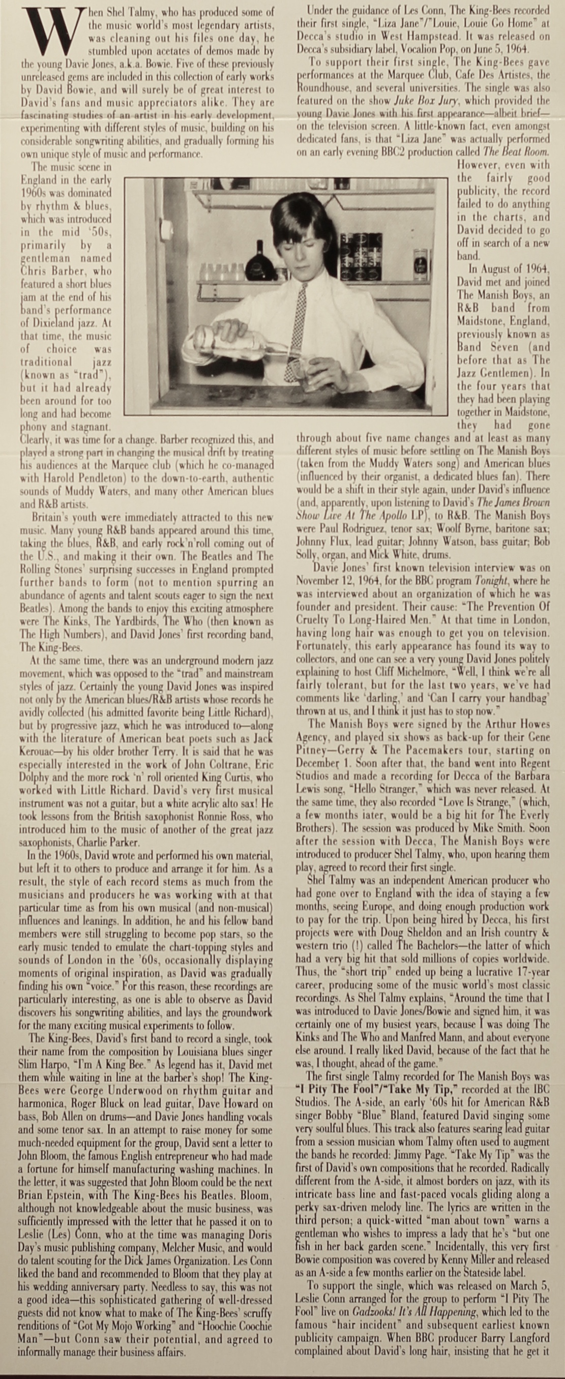 Side 2: I’ll Follow You; Glad I’ve Got Nobody; Can’t Help Thinking About Me; And I Say To Myself; Do Anything You Say; I Dig Everything; I’m Not Losing Sleep.