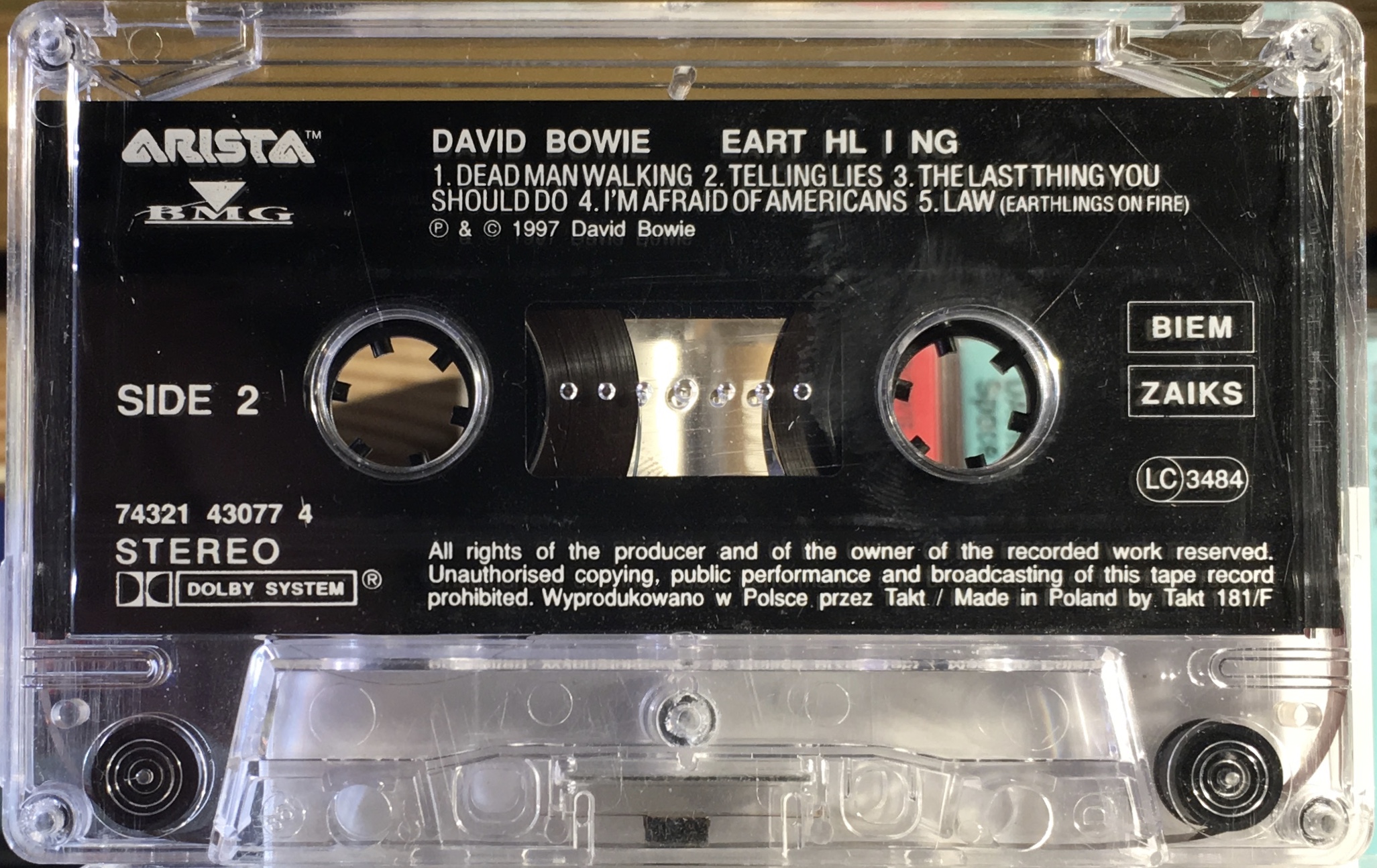 Side 2: Telling Lies; The Last Thing You Should Do; I’m Afraid Of Americans; Law (Earthlings On Fire).