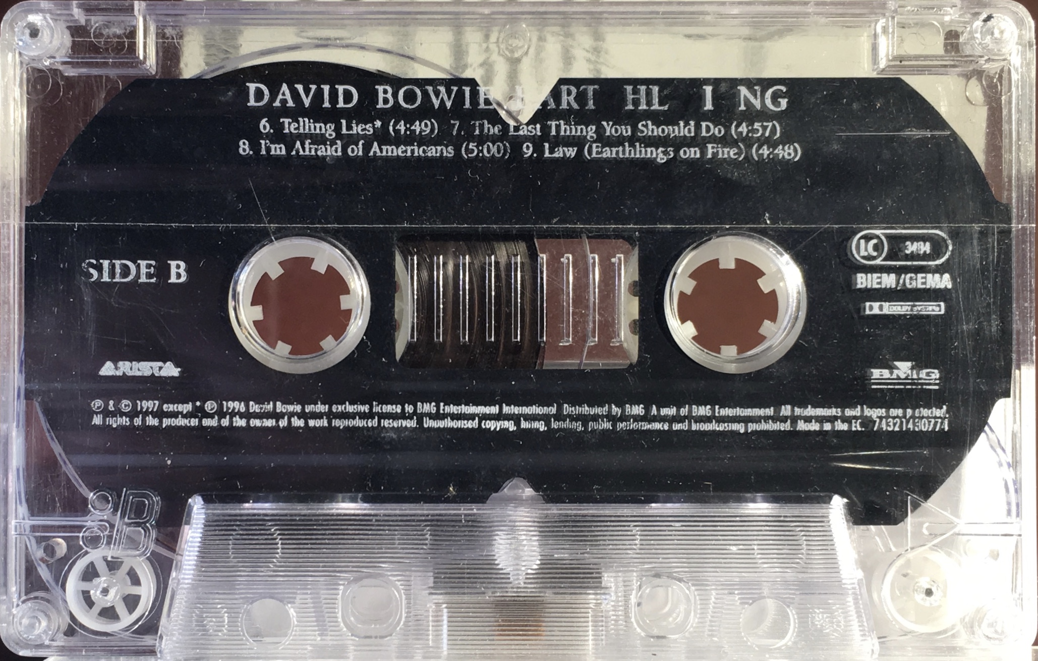 Side 2: Telling Lies; The Last Thing You Should Do; I’m Afraid Of Americans; Law (Earthlings On Fire).