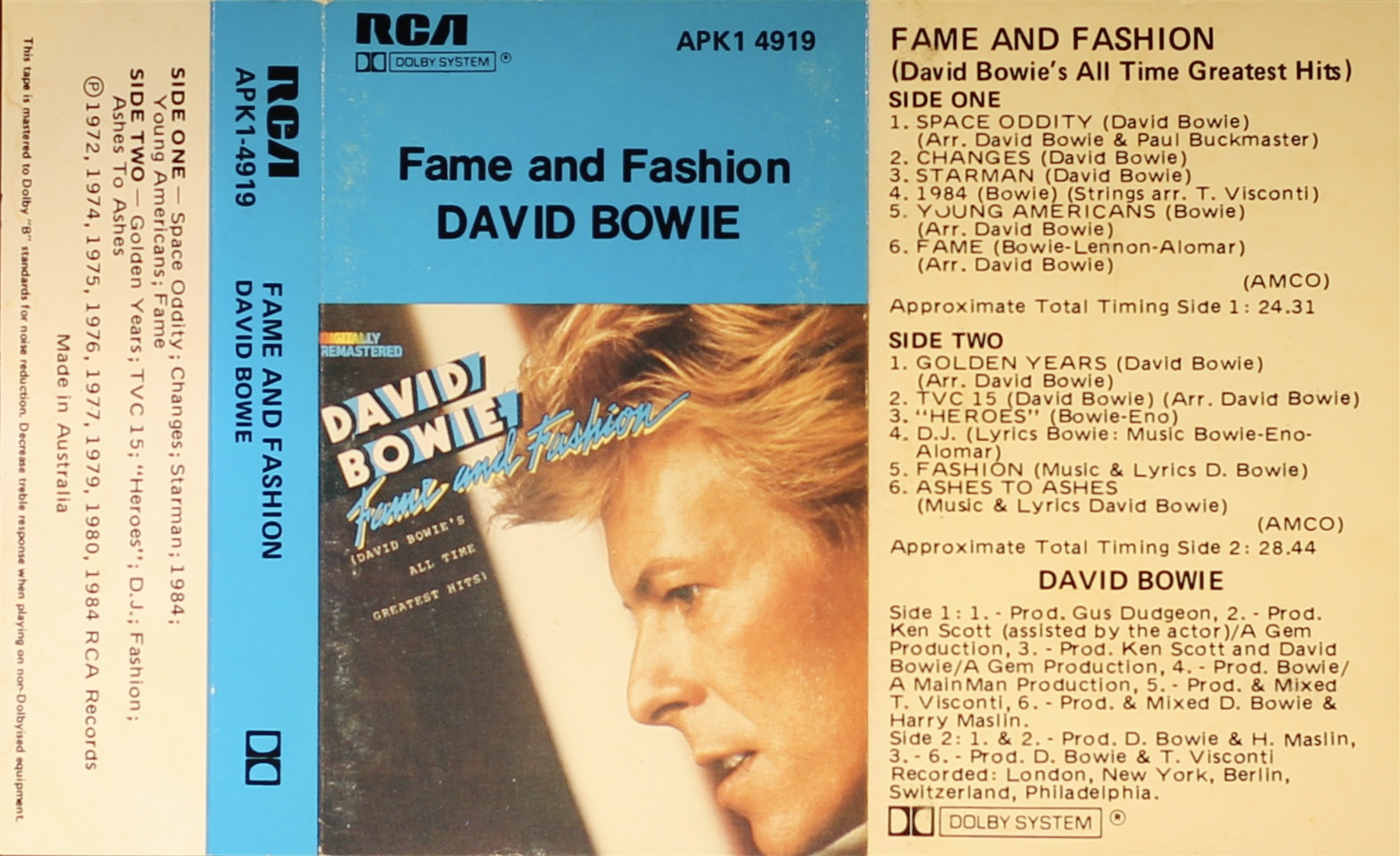Side 2: Golden Years; TVC 15; “Heroes”; D.J.; Fashion; Ashes To Ashes.