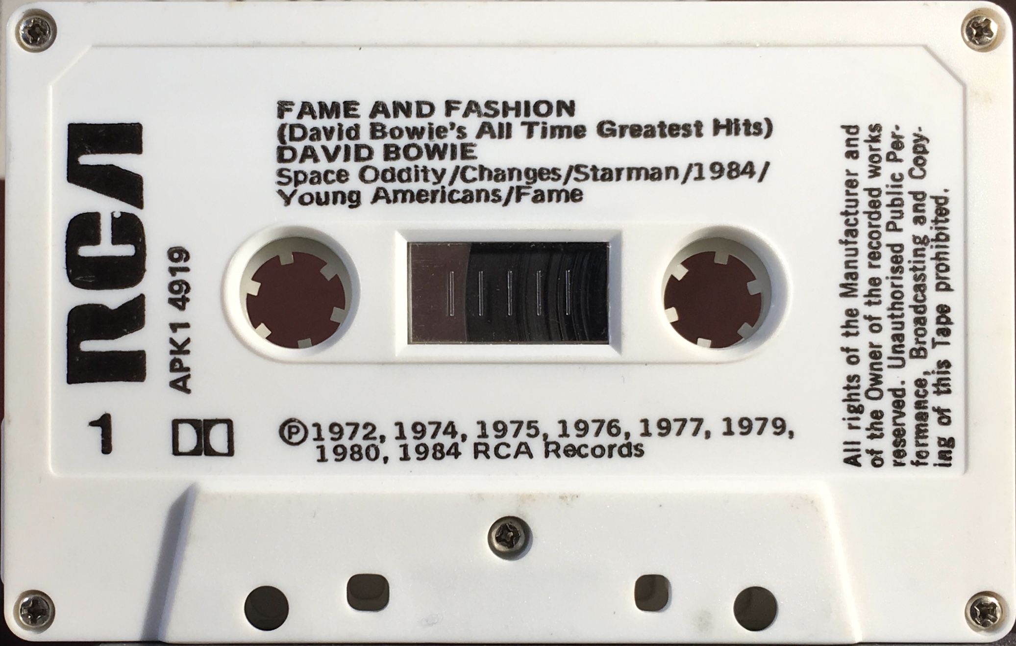 Side 1: Space Oddity; Changes; Starman; 1984; Young Americans; Fame.