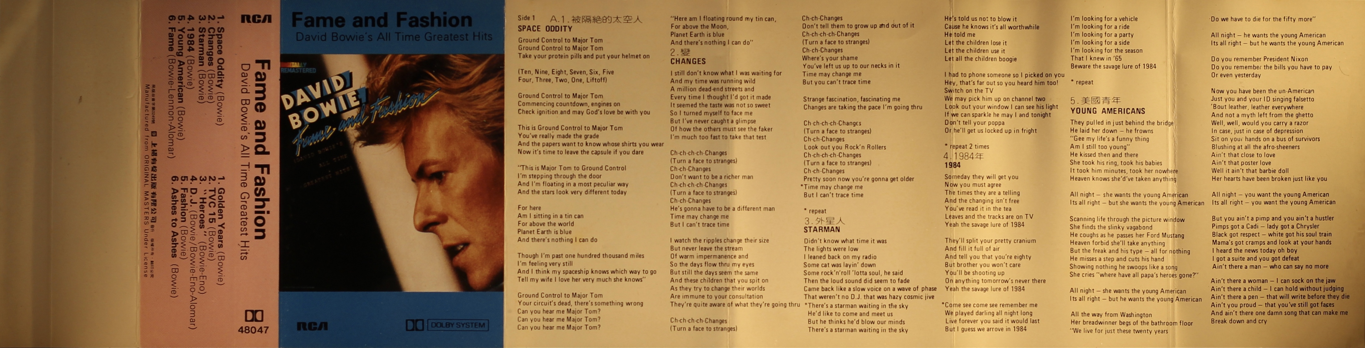 Side 1: Space Oddity; Changes; Starman; 1984; Young Americans; Fame.