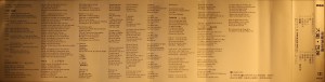 Blue header and footer; pink spine and rear panel with white inner panel. The cover is thick, glossy, folded paper and the rear has lyrics in English and information in Chinese.