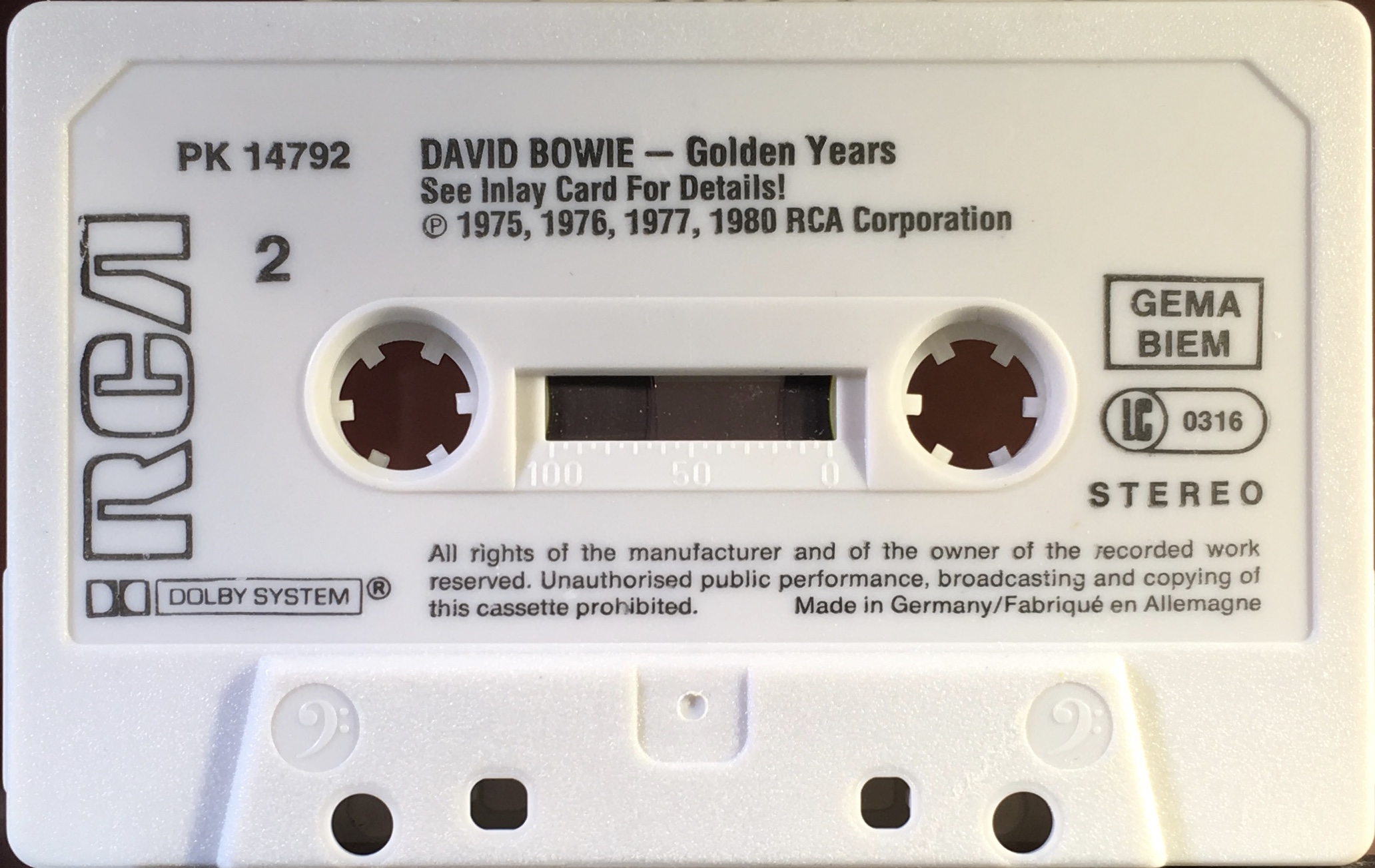 Golden Years: EU; RCA, PK 84792 (BOWK4); 1983.