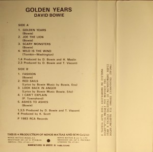 Side A: Golden Years; Joe The Lion; Scary Monsters (and super creeps); Wild Is The Wind.