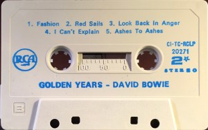 Side B: Fashion; Red Sails; Look Back In Anger; I Can’t Explain; Ashes To Ashes.