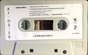 Concertina style cover on thick, glossy, folded paper with full frame photo on front and spine. Album artwork incorporating track and personnel information printed over the remaining four inner and five rear panels. Chinese writing in red on front cover. Spine has title in Chinese and English and the logos of Columbia and Shanghai Audio-Visual Press. Track list on rear panel and information in English and Chinese. Holographic stamp on case