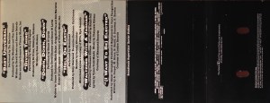 Full picture panel cover on glossy paper. Track list on rear panel with expanded track list over the two inner panels continued on their inside. Remaining inside panels are black with movie. Dolby and CrO2 information printed on them.