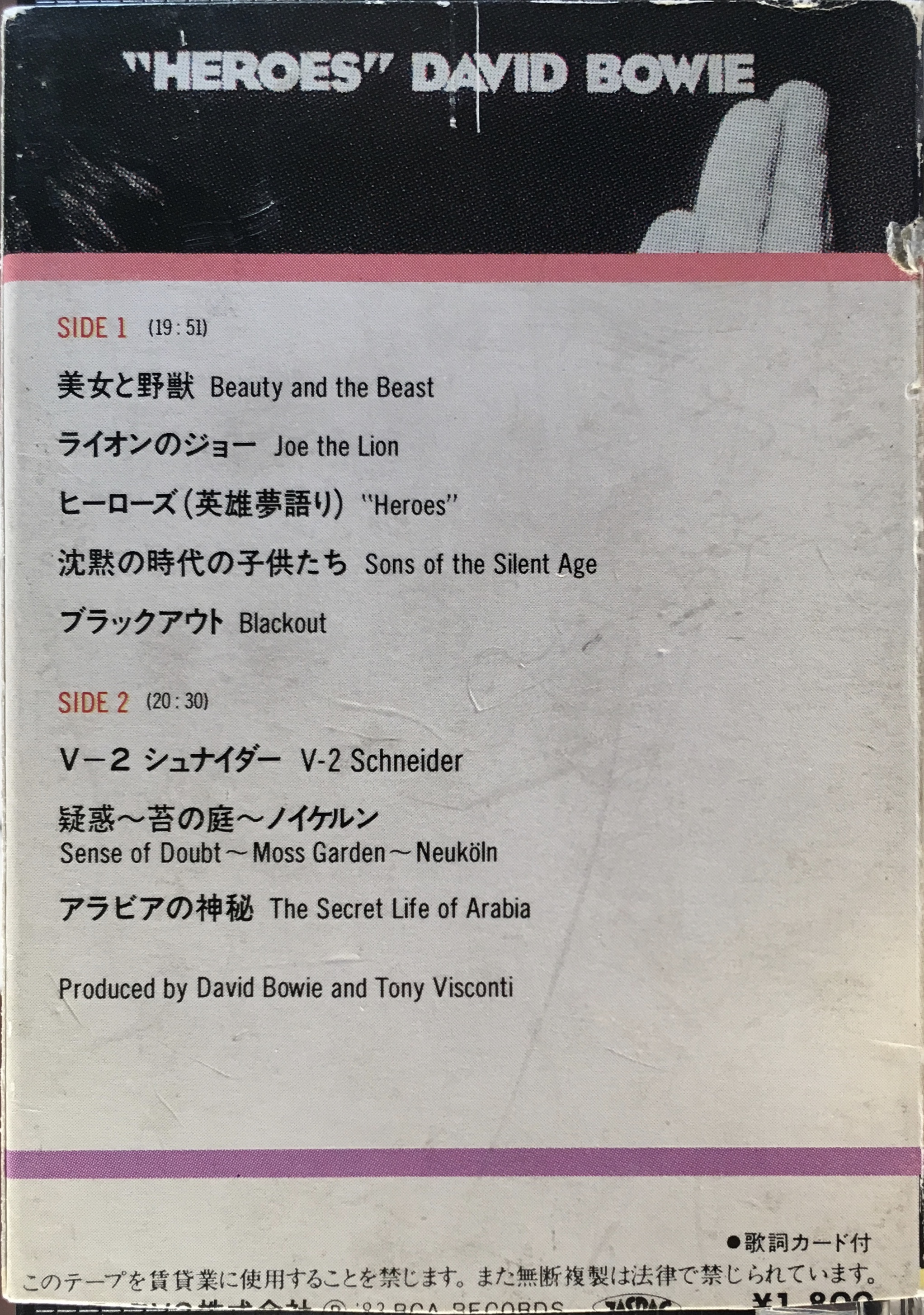 “HEROES”: Japan; RCA; RPT-2106 (AYK1-3857); 1983.
