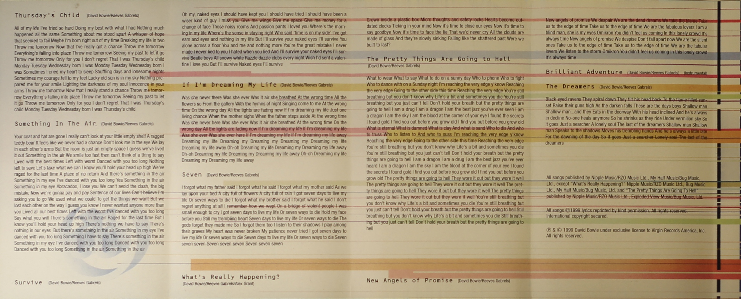 Side 2: What’s Really Happening; The Pretty Things Are Going To Hell; New Angels Of Promise; Brilliant Adventure; The Dreamers.