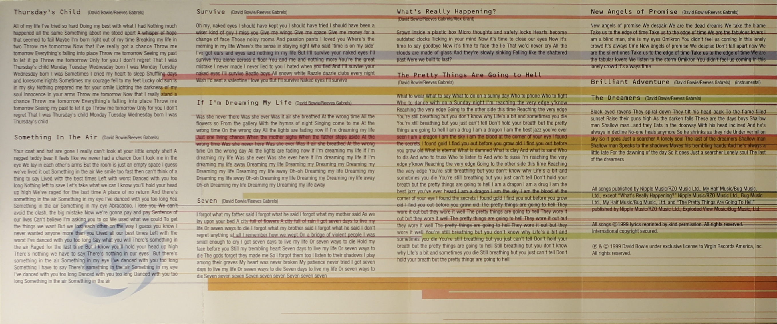 Side 2: What’s Really Happening; The Pretty Things Are Going To Hell; New Angels Of Promise; Brilliant Adventure; The Dreamers.
