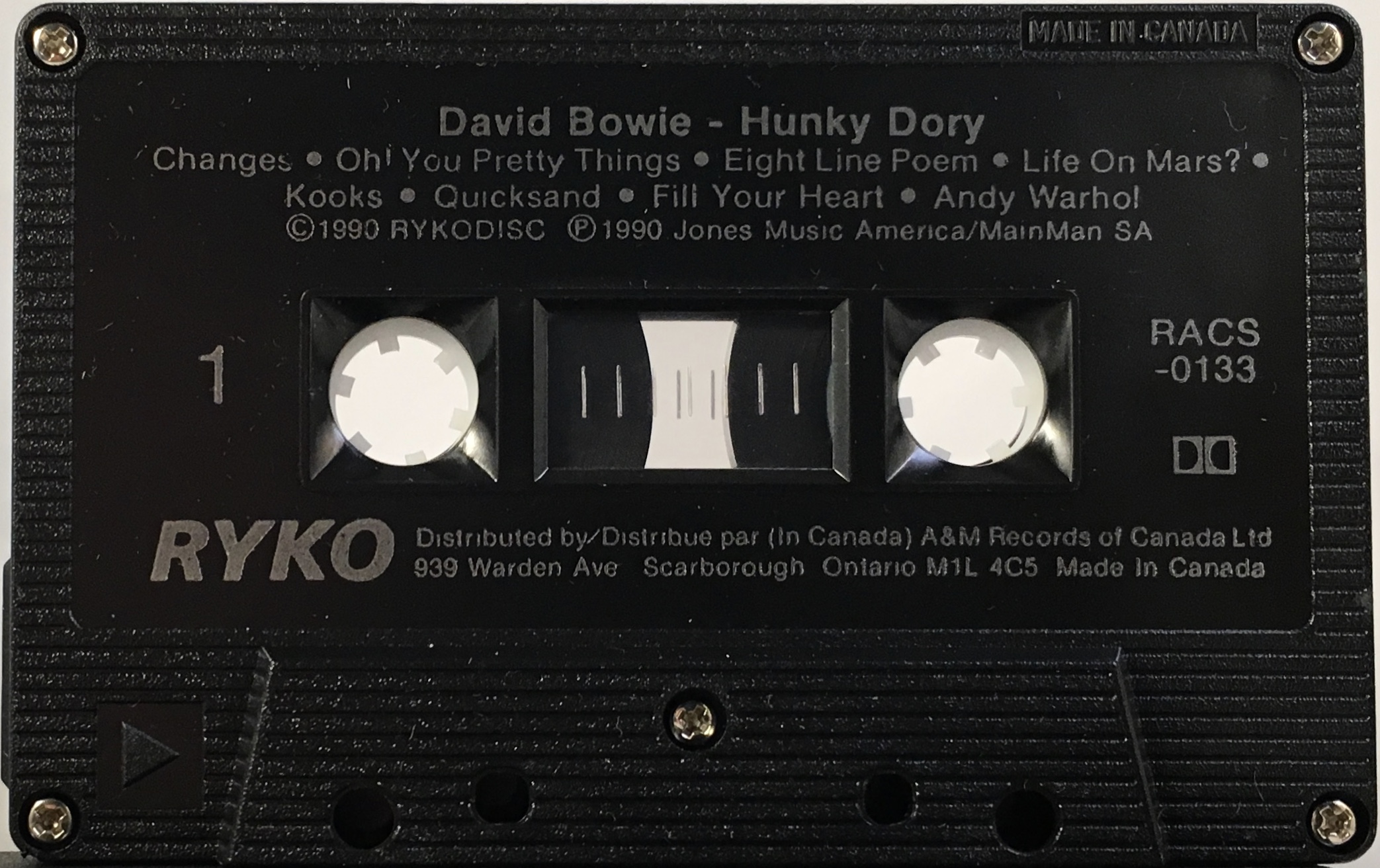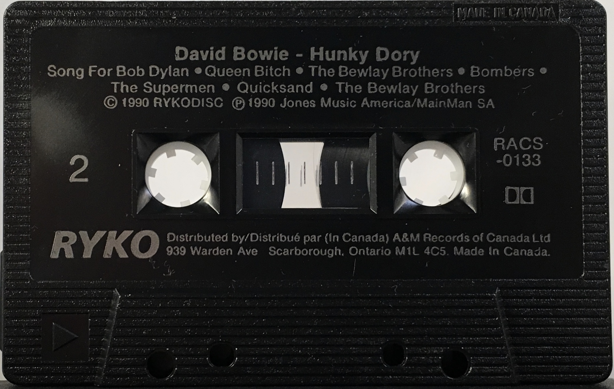 Hunky Dory: Canada; RYKO; RACS 0133; 1990.