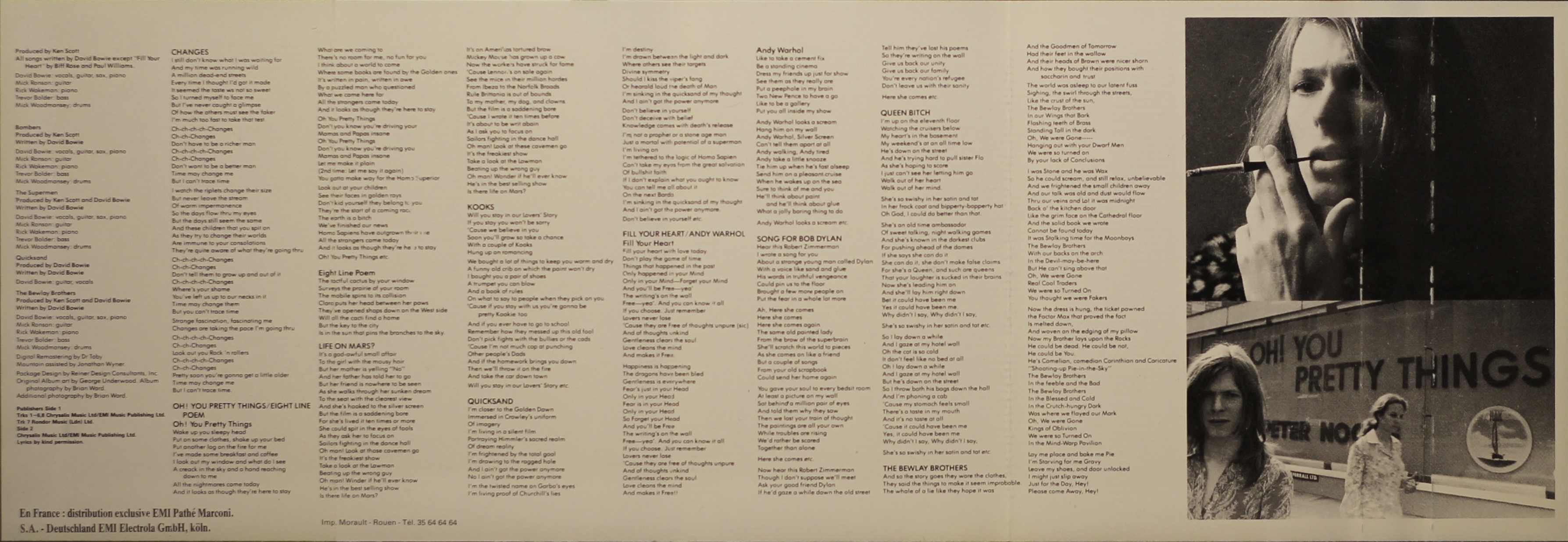 The track sequence has been slightly adjusted from the LP format so that tracks 1 and 2 from side 2 ‘Fill Your Heart’ and ‘Andy Warhol’ have been added as the last tracks on side 1 to give room for the bonus tracks: ‘Bombers’, ‘The Supermen – alternate version’, ‘Quicksand – demo version’ and ‘The Bewlay Brothers – alternate mix’ on side 2.