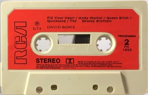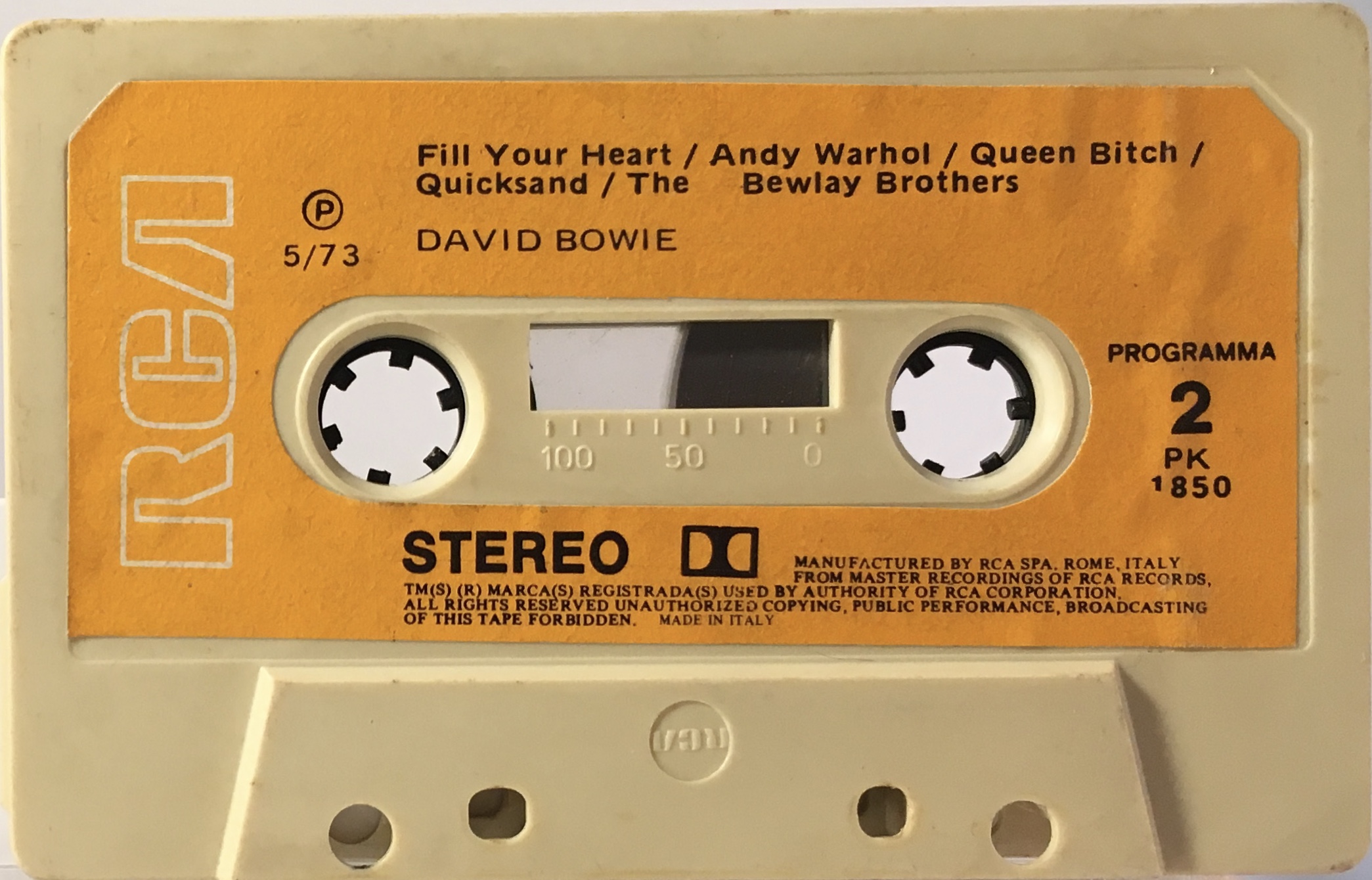 Side 2: Fill Your Heart; Andy Warhol; Queen Bitch; Quicksand; The Bewlay Brothers.