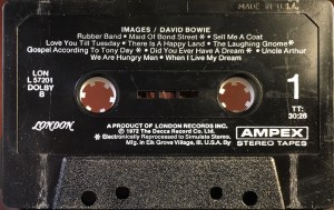 Cover photograph bordered by black top and bottom. Black spine and rear panels on paper glued to an stiff plastic, black AMPEX cassette box. Track list on rear. No Dolby sign on front. This style of cassette was made by Ampex between 1972 and 1976.