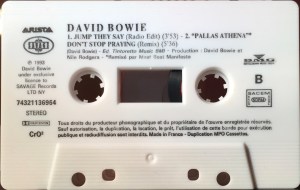 Side 1: Jump They Say (radio edit)(3:53); Pallas Athena (Don’t Stop Praying remix)(5:36).