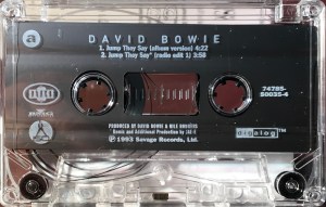 Side 1: Jump They Say (album version), contains portions of: Black Tie White Noise; I Feel Free; Miracle Goodnight; Nite Flights’; Don’t Let Me Down & Down .