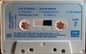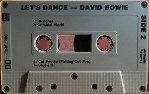 Side 1: Modern Love; China Girl; Let’s Dance; Without You.