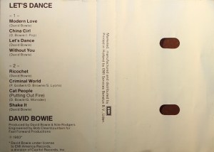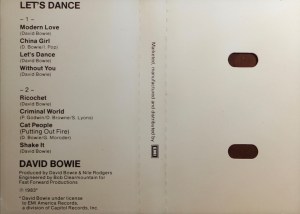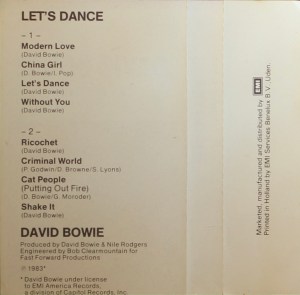 Side 1: Modern Love; China Girl; Let’s Dance; Without You.