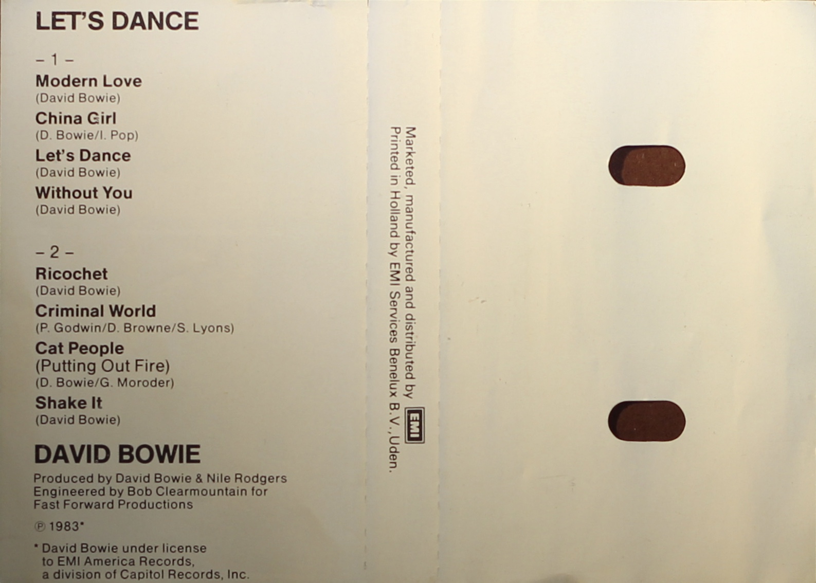 Let’s Dance: EU; EMI America, 1C 264 400165; 1983.