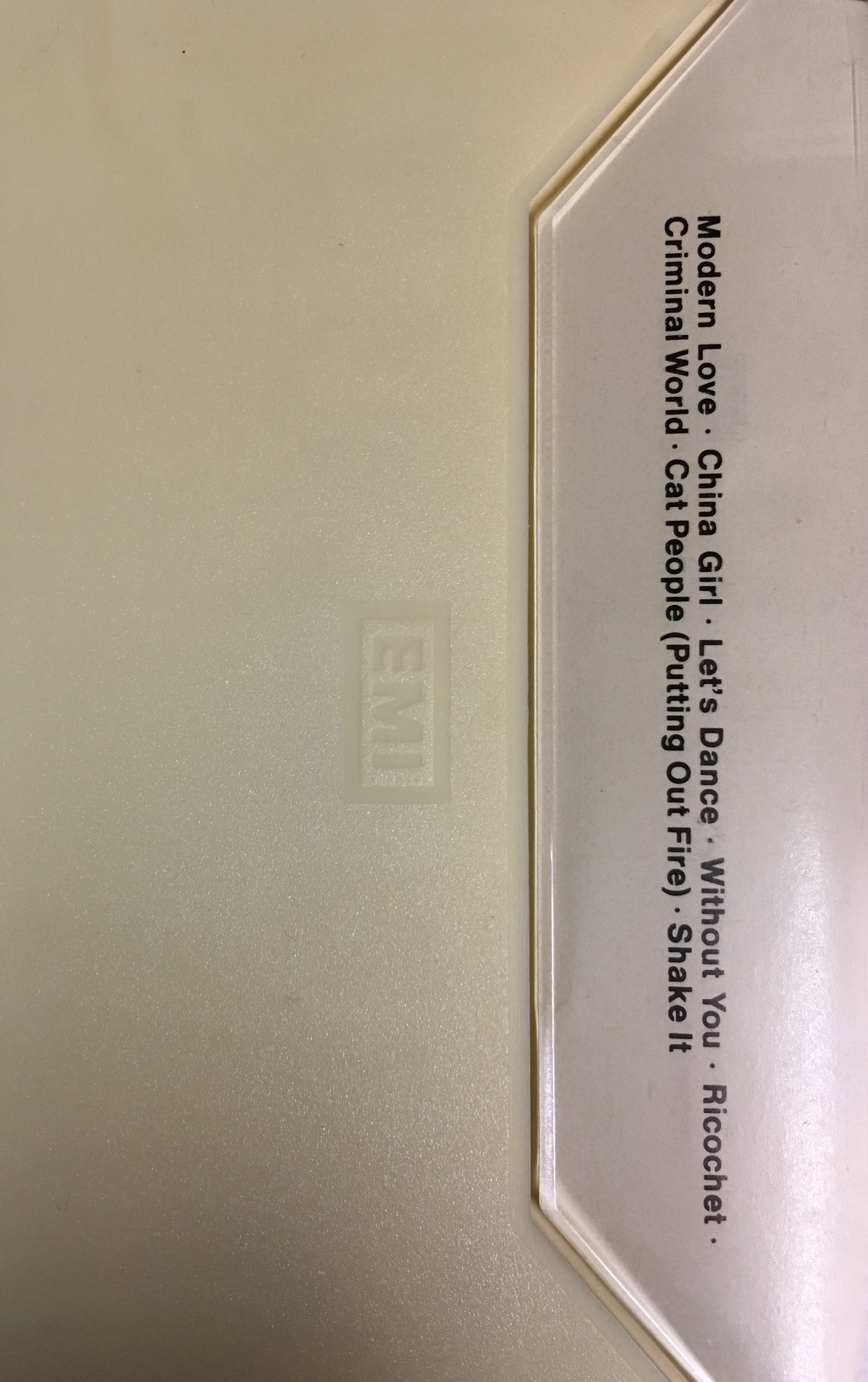 Side 1: Modern Love; China Girl; Let’s Dance; Without You.