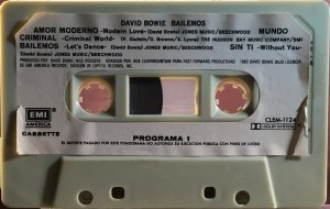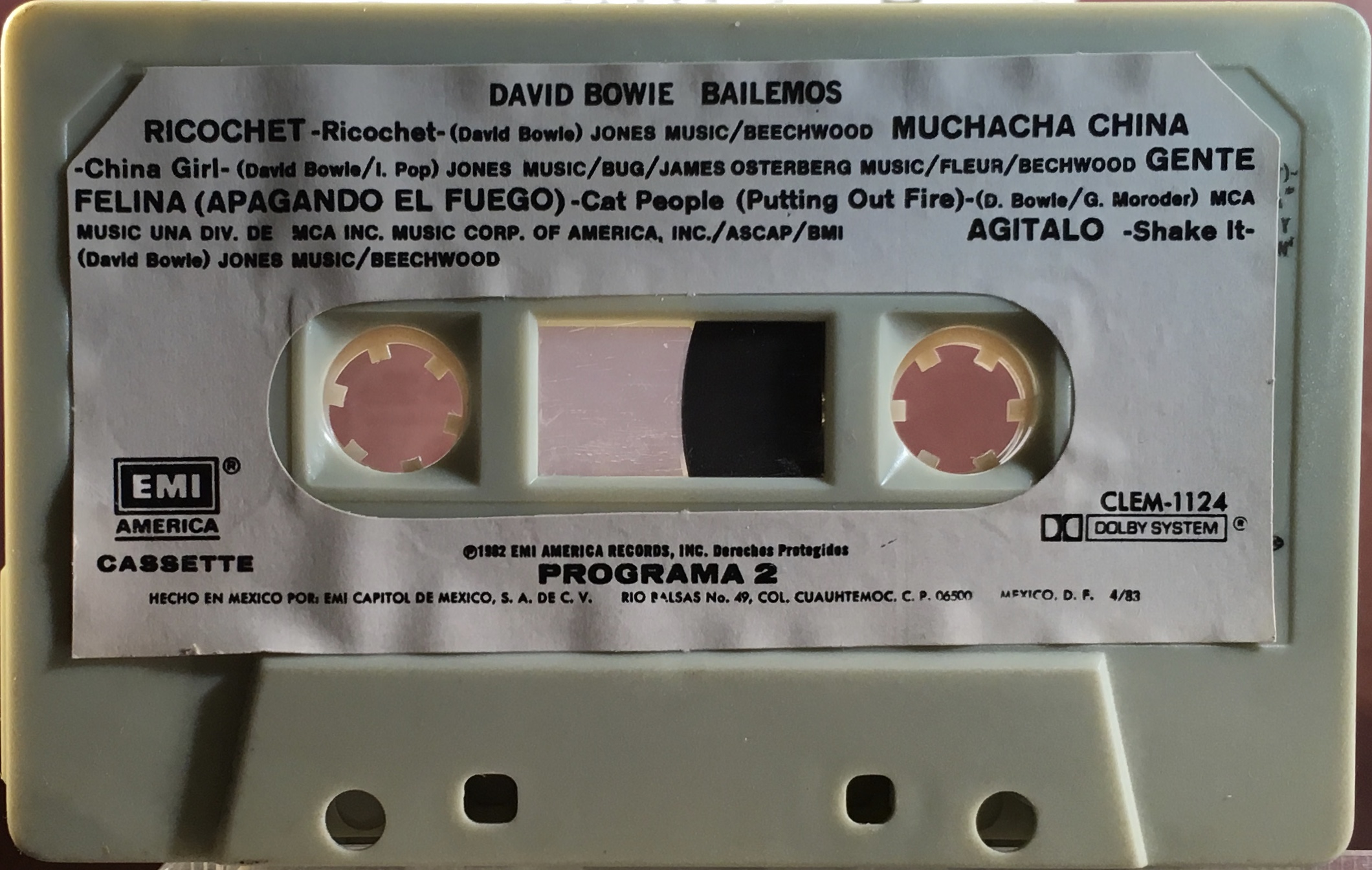 The cassette has been previously used and Let’s Dance has been recorded over ‘ Louis Clark Y La Orquestra Filarmonica Real. “La Orquestra Filarmonica Real Interpeta La Collection De Queen” a 1982 Mexican EMI release. This practice was quite common at that time – see Diamond Dogs; UK; RCA.