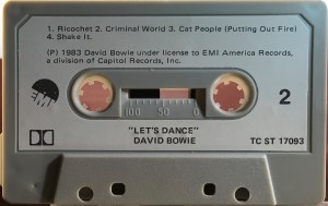 Side 1: Modern Love; China Girl; Let’s Dance; Without You.