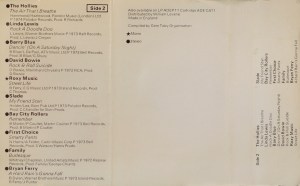 David Bowie performs on one track: ‘Rock & Roll Suicide’ on Side 2.