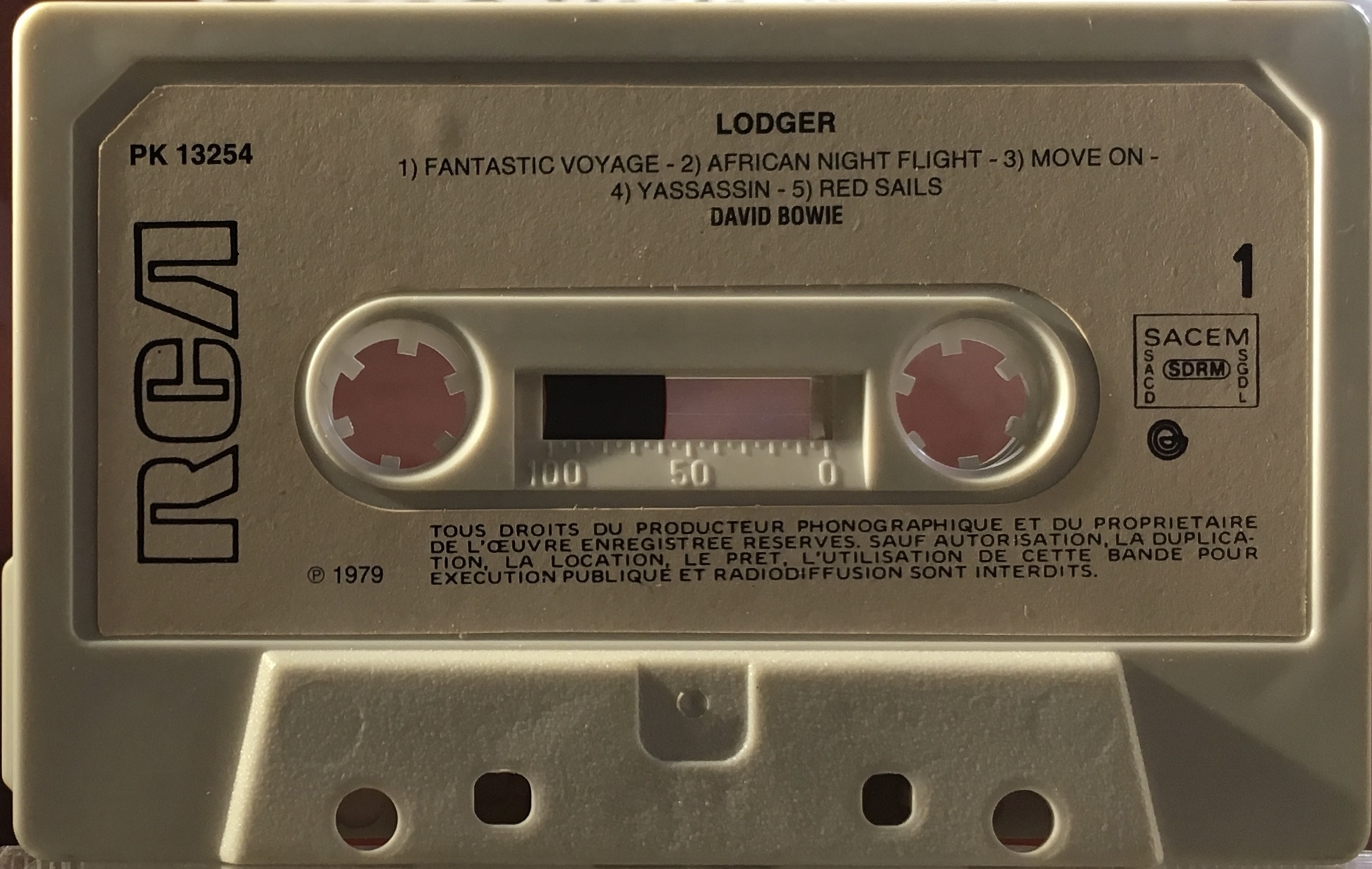 Titles are in English. The copyright information on both sides is in French, the cassette is stamped with ‘SACEM’ rights stamp.