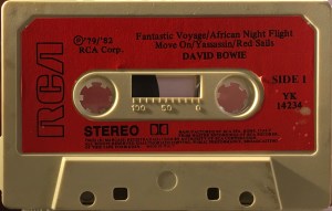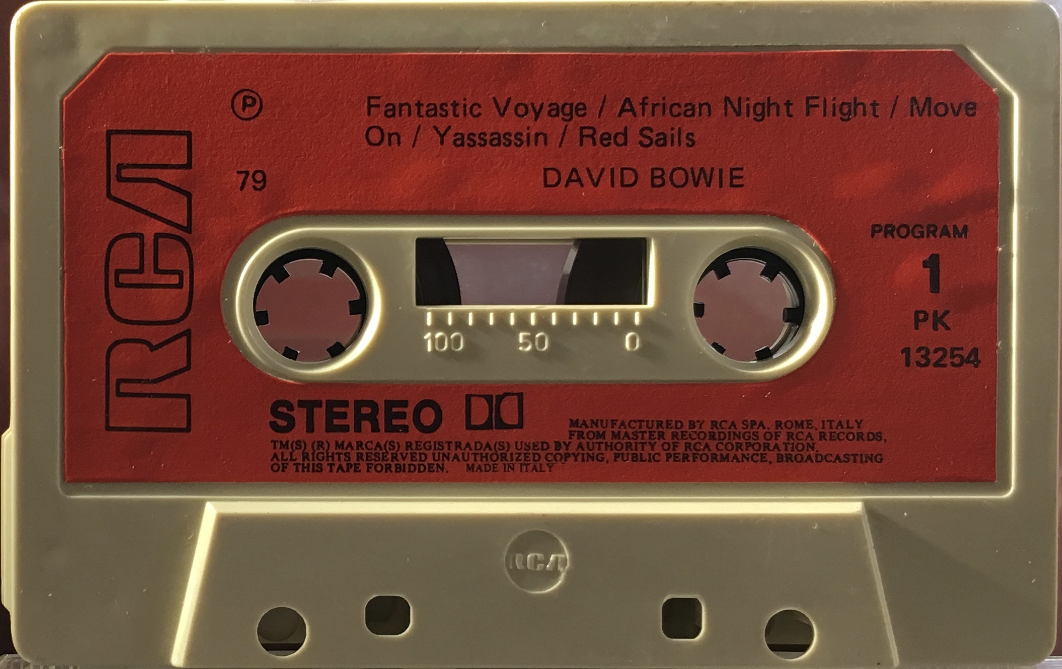 RCA red label with hollow black RCA logo on white RCA cassette. Label information: “Manufactured by RCA SPA Rome, Italy from master recordings of RCA Records” and “Made In Italy”.