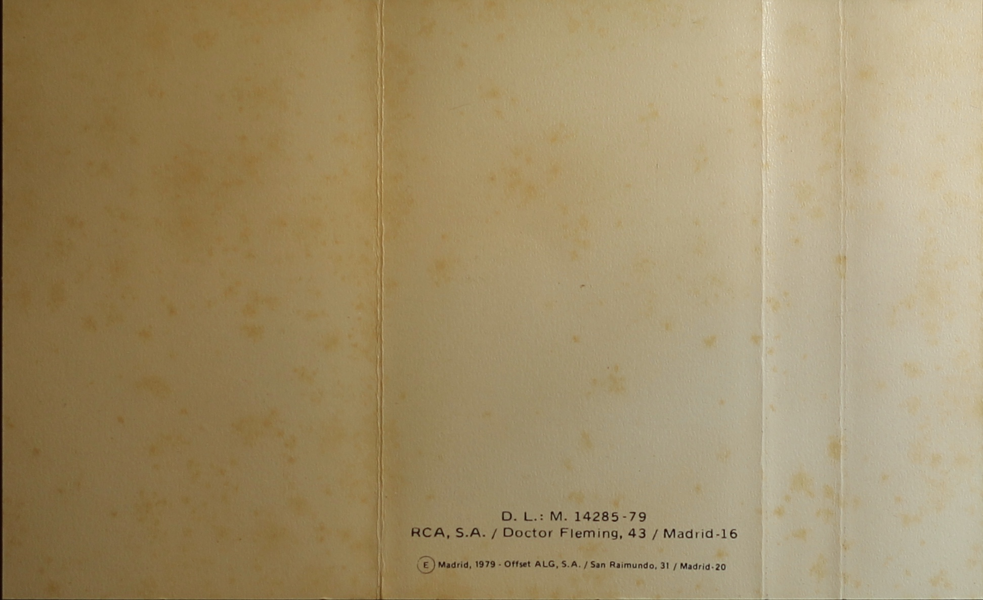 Black ink printed directly onto white or off-white shell with a horizontal hollow black RCA logo, SGAE rights and Spanish text on side 1 and English on side 2. (‘Fabricado por RCA S.A. Dr Fleming…’)