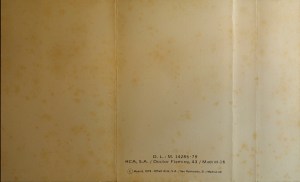 Cream tab top, spine and rear, white inner panel. Price code ‘G’ on the upper right of the tab top and RCA Victor on the left. There are two types of paper used on the cover: the first one is printed on folded papyrus-like paper with a waxy texture; the second is on folded, stippled paper with a wry texture, a comparison is shown below. The stippled cover has a distinctive green tinge to it. Track list on rear and inner panels.The cover states Cara A & B for the sides but the cassette shows 1 & 2.