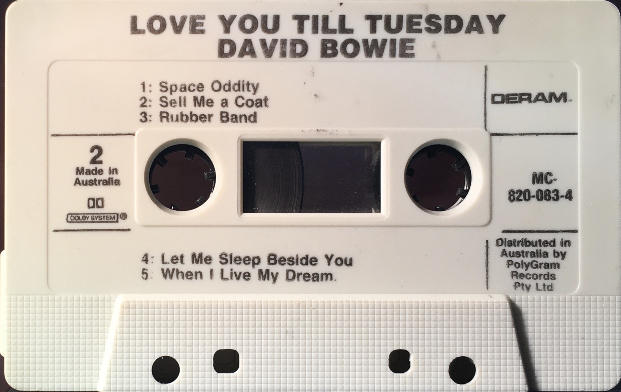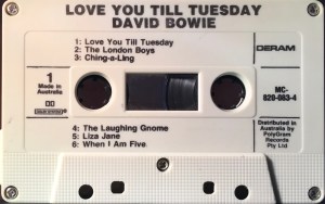 Love You Till Tuesday: Australia; Deram, MC-820 083-4; 1984.