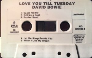 Side 2: Space Oddity; Sell Me A Coat; Rubber Band; Let Me Sleep Beside You; When I Live My Dream.