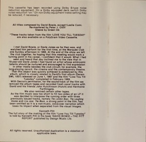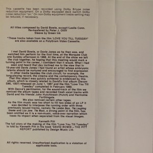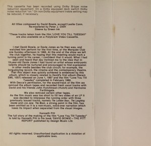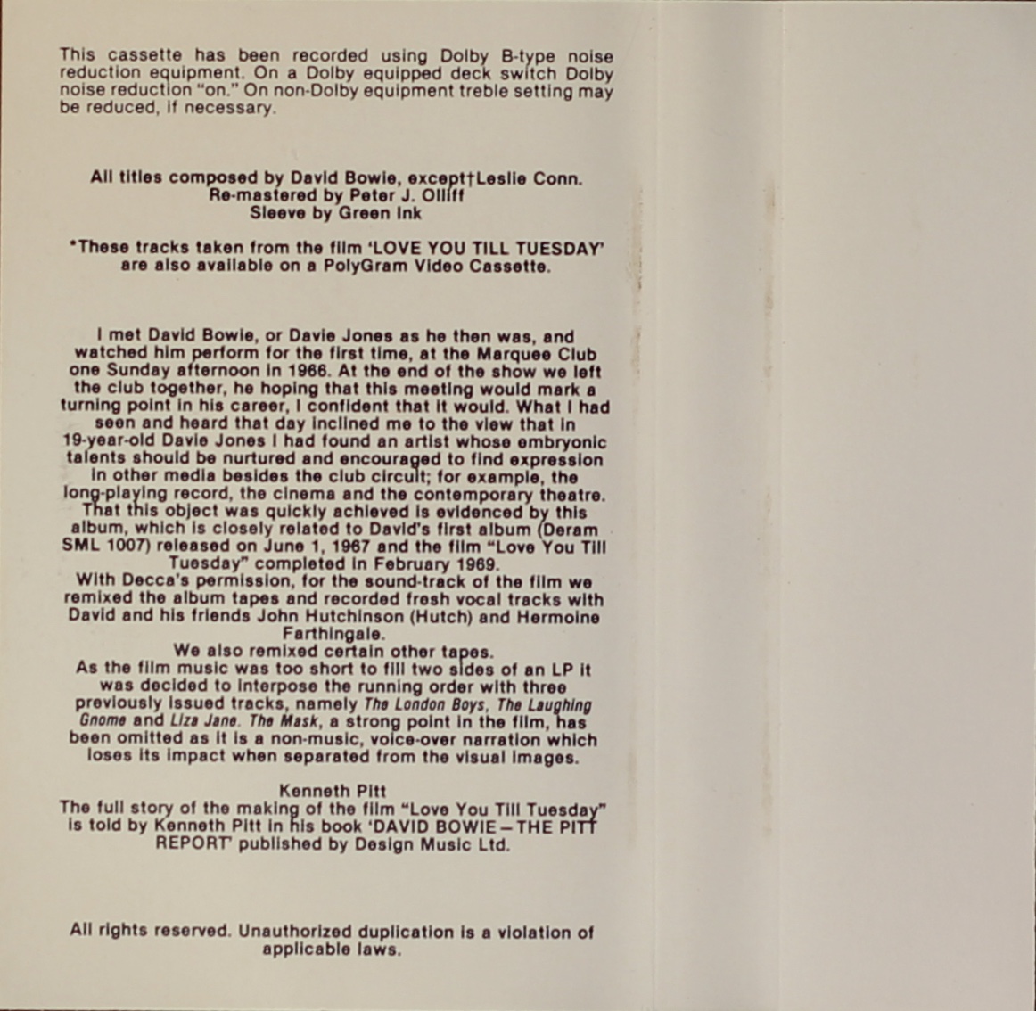 Side 2: Space Oddity; Sell Me A Coat; Rubber Band; Let Me Sleep Beside You; When I Live My Dream.