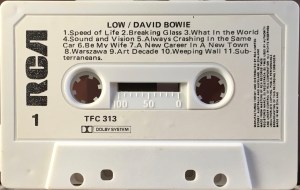 Side 1: Low – Speed Of Life; Breaking Glass; What In The World; Sound And Vision; Always Crashing In The Same Car; Be My Wife; A New Career In A New Town; Warszawa; Art Decade; Weeping Wall; Subterraneans.