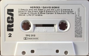 Side 2: “Heroes” – Beauty And The Beast; Joe The Lion; Heroes; Sons Of The Silent Age; Blackout; V-2 Schneider; Sense Of Doubt; Moss Garden; Neukoln; The Secret Life Of Arabia.