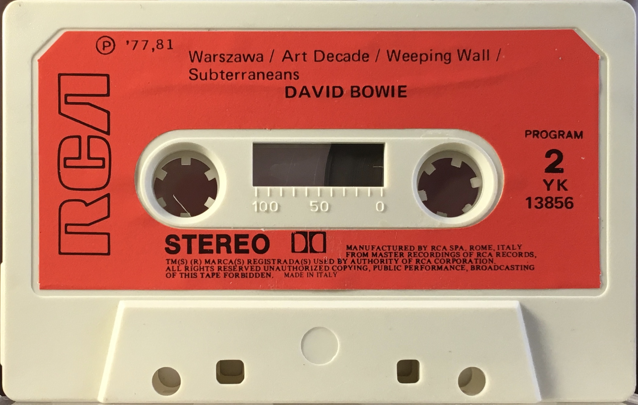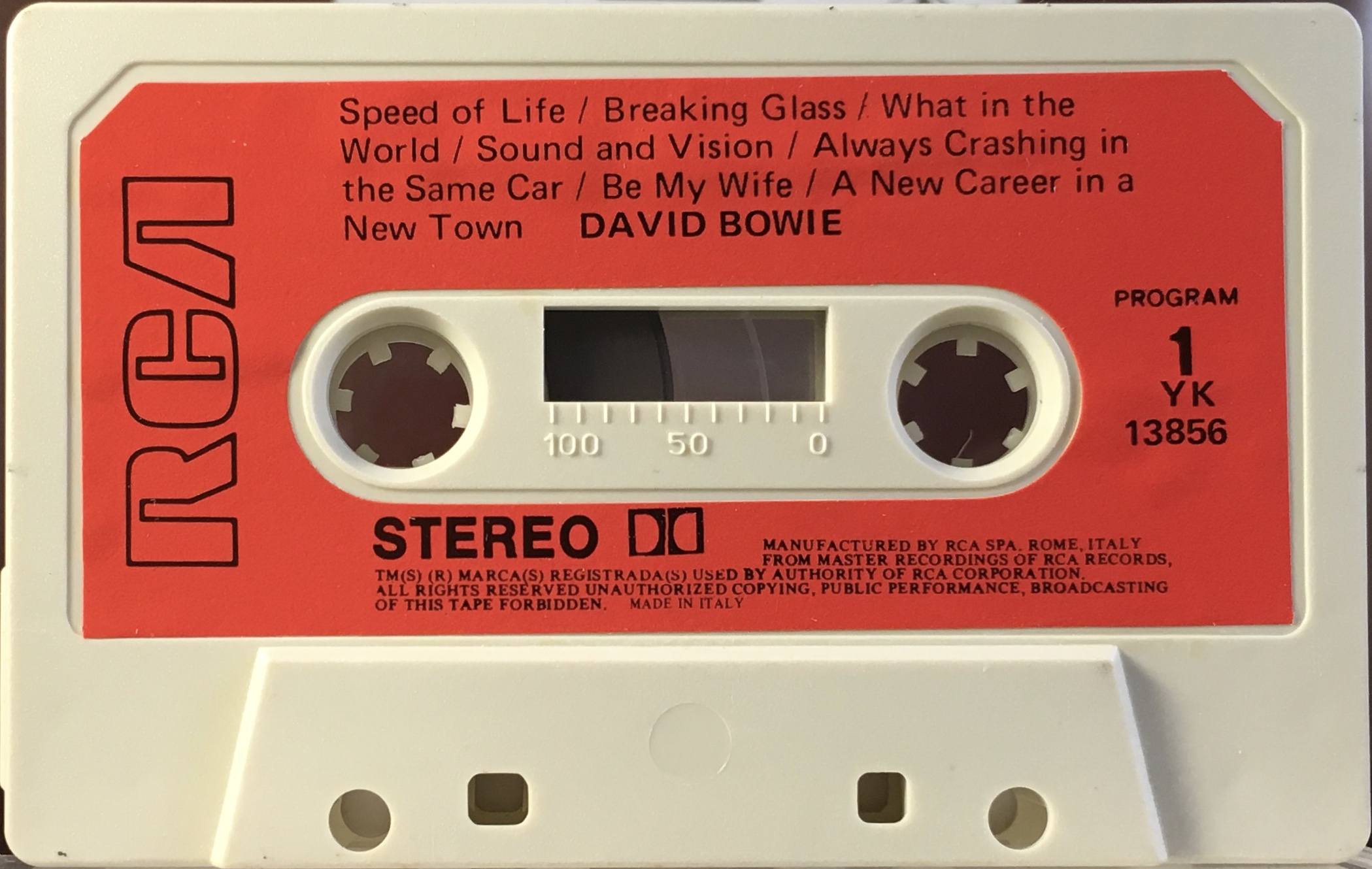 Red RCA label with hollow black RCA on white cassette; manufactured by RCA SPA Rome.