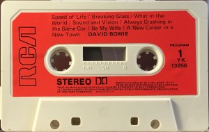 Side 1: Speed Of Life; Breaking Glass; What In The World; Sound And Vision; Always Crashing In The Same Car; Be My Wife; A New Career In A New Town.