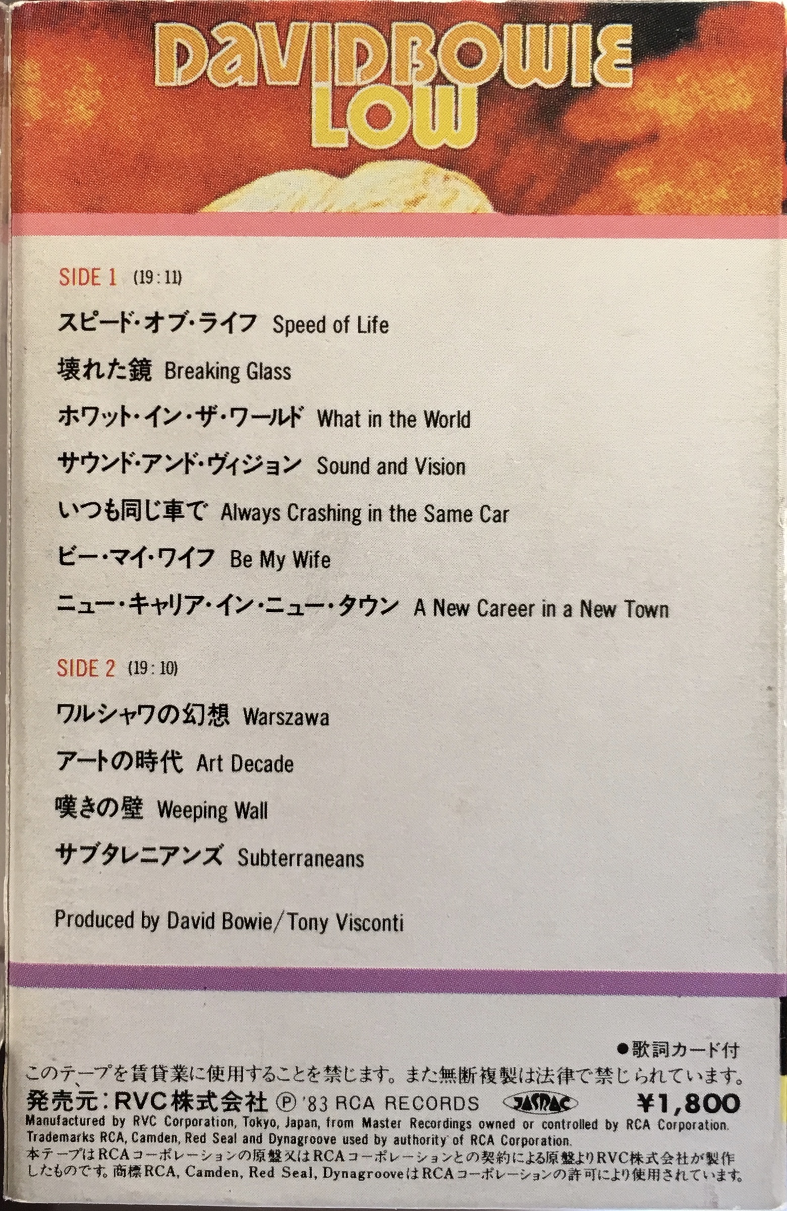 Low: Japan; RCA, RPT-2105 (AYK1-3856); 1983.