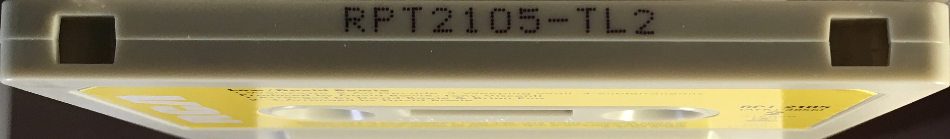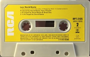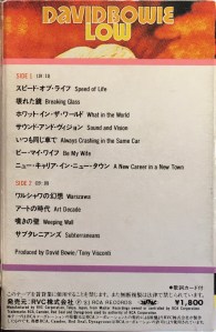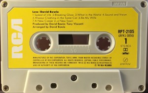 Yellow label with solid white RCA on grey cassette; manufactured by RVC Corporation. Tokyo, Japan. Comes with a lyric/ information page on light paper that folds into the tape box.