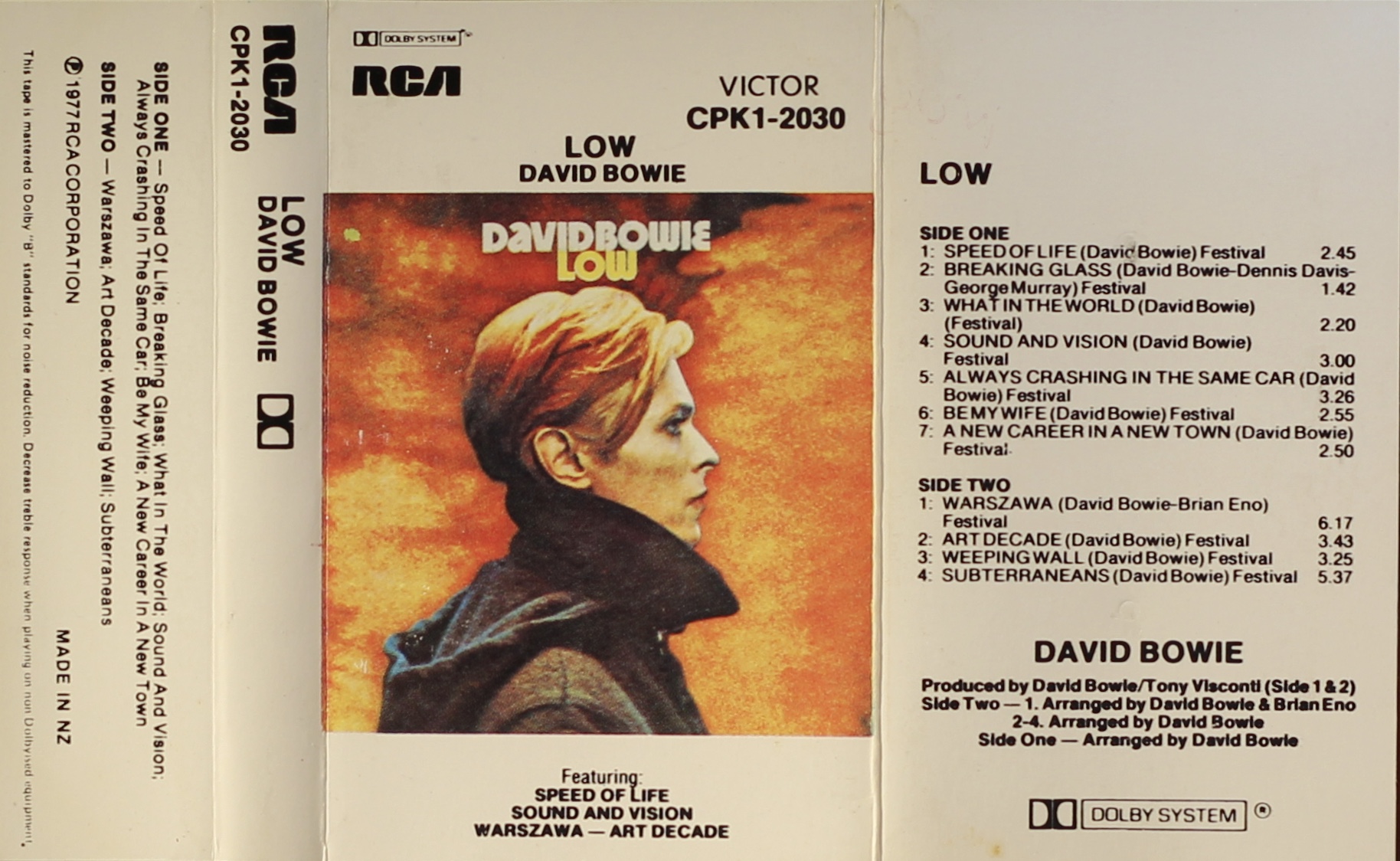 Side 1: Speed Of Life; Breaking Glass; What In The World; Sound And Vision; Always Crashing In The Same Car; Be My Wife; A New Career In A New Town.
